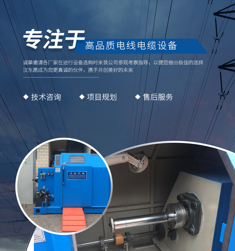 常州漢東機(jī)械始創(chuàng)于2006年,是集電線電纜機(jī)械設(shè)計(jì)、開發(fā)、制造、安裝、調(diào)試為一體化的高科技企業(yè)。本公司自開業(yè)以來,積極引進(jìn)日本,歐美等國外電線電纜設(shè)備之先進(jìn)技術(shù),先后成功推出了達(dá)到行業(yè)先進(jìn)水平的電線電纜設(shè)備,主要產(chǎn)品有擠出、繞包、束線、成纜等電線電纜固定設(shè)備。在提供系統(tǒng)設(shè)備的同時(shí),還向客戶提供售前技術(shù)咨詢、項(xiàng)目規(guī)劃、以及售后服務(wù)。我公司本著“以人為本、科技先導(dǎo)、用戶為上”的宗旨,為客戶提供牢靠的產(chǎn)品與省心的服務(wù)。漢東愿成為您更真誠的伙伴,攜手共創(chuàng)美好的未來!